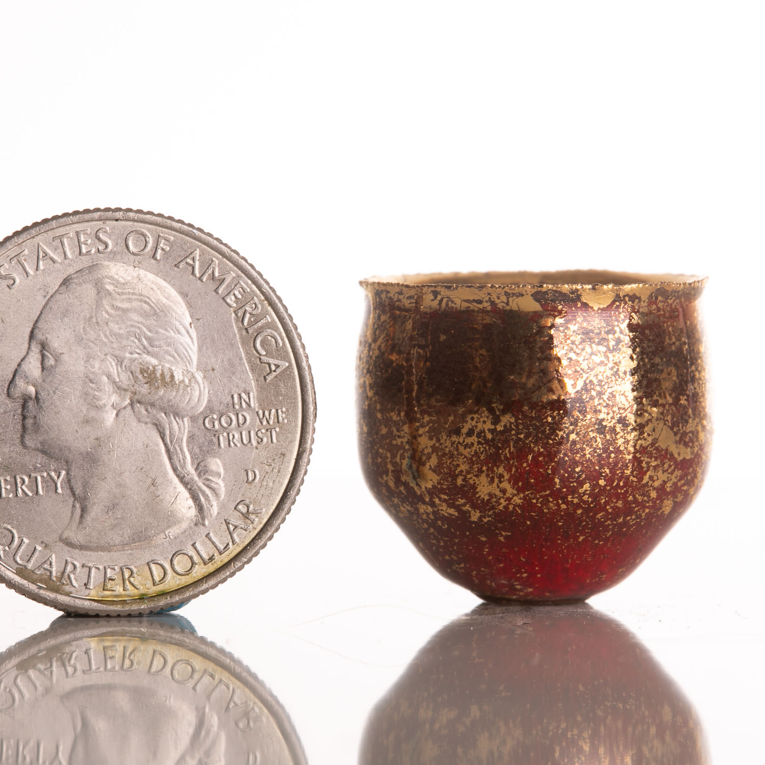 Pictured with a US quarter for scale (slightly less than 1″ / 25mm tall).